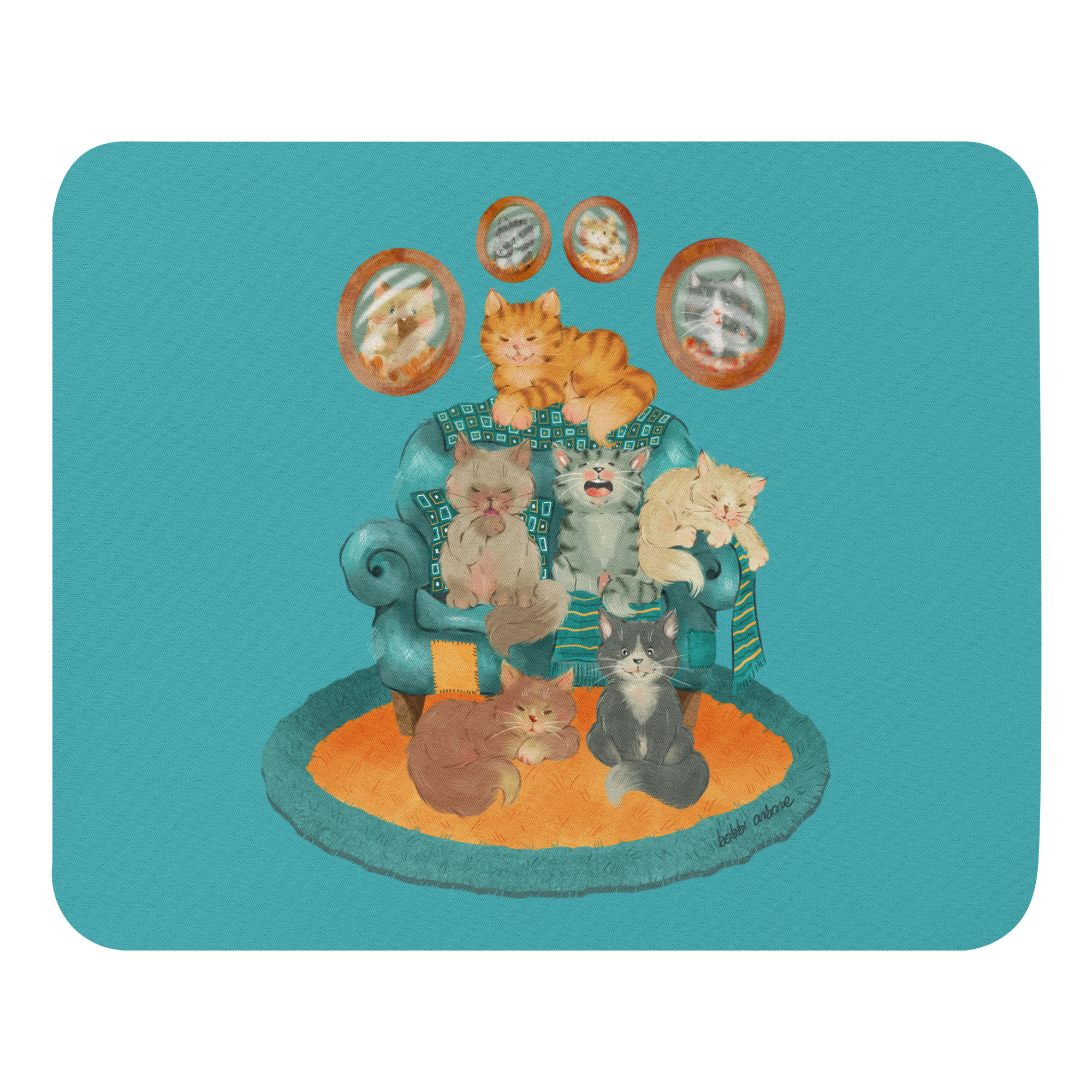 Cats are our family; they add fun and fluff, and lots of purrs to our lives. And we’d love to bring wherever we go that warm, soft feeling they give us. This mouse pad will add that familiar warmth: with the bright turquoise and this cute family of cats, your desk will look totally different!.